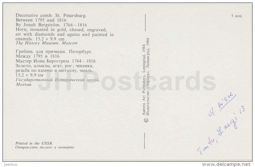 Decorative Comb - horn - Russian and Soviet Jewellery - 1984 - Russia USSR - unused