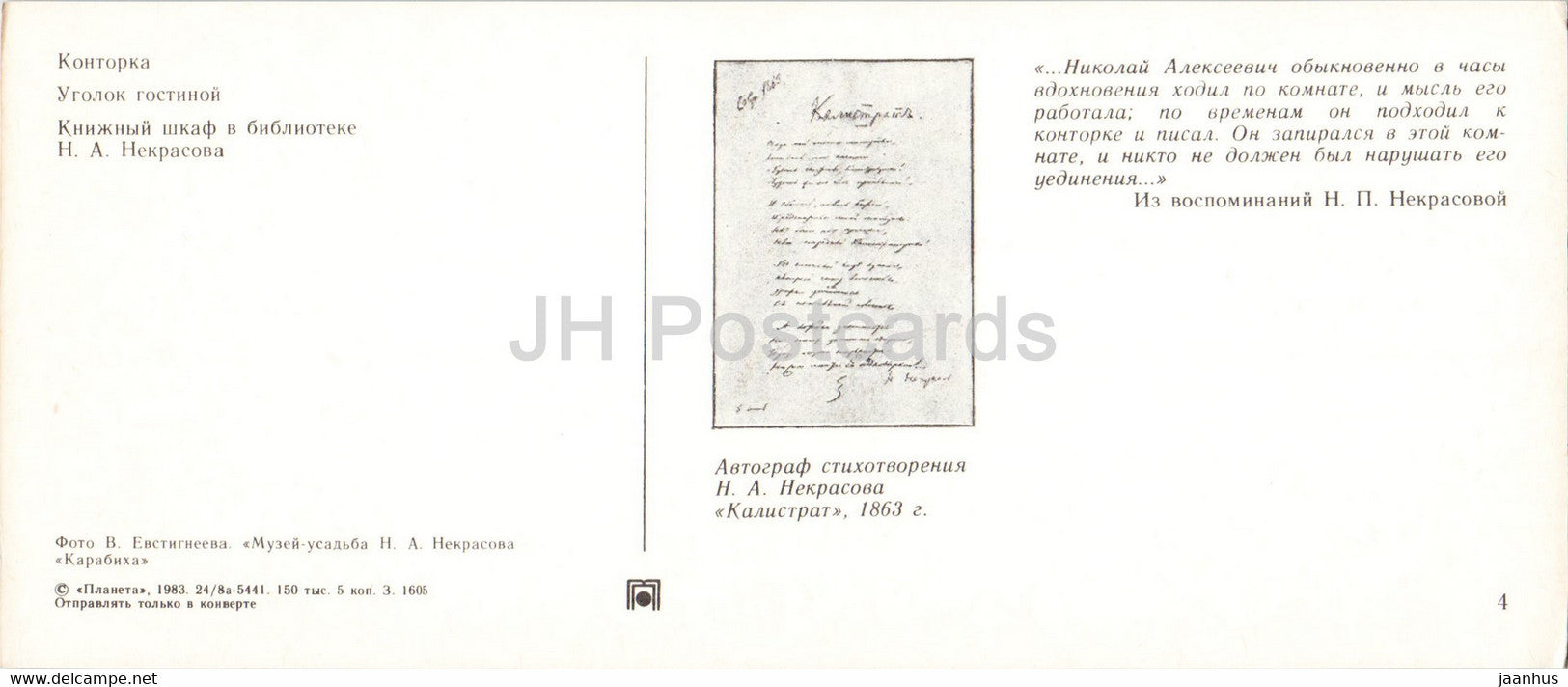desk - living room corner - Bookcase Nekrasov library - Russian Poet Nekrasov Museum Manor - 1983 - Russia USSR - unused