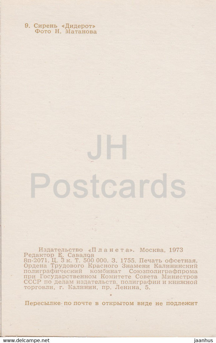 Diderot - Lilac - Flowers - 1973 - Russia USSR - unused