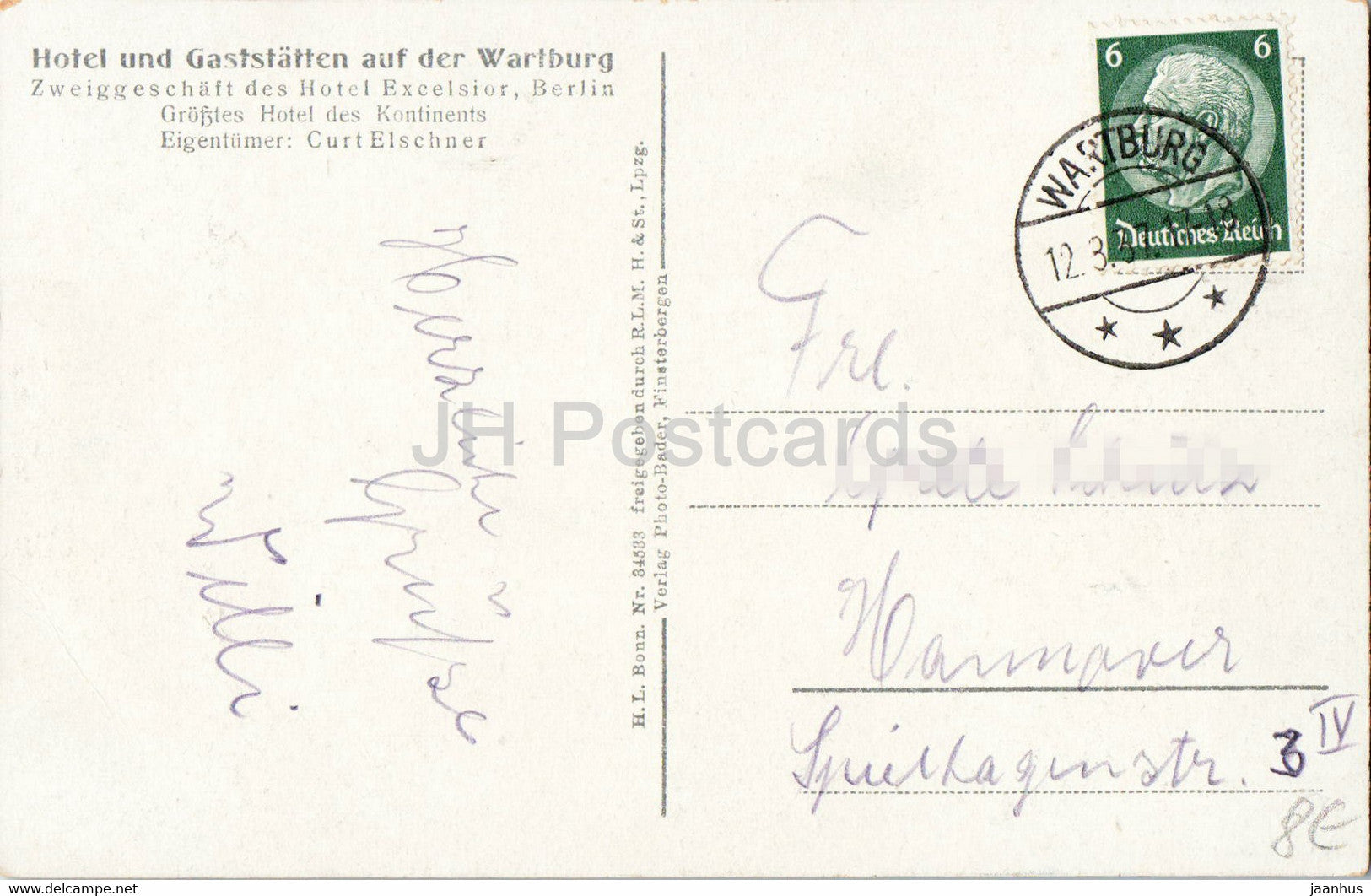 Die Wartburg - Original Fliegeraufnahme - Hotel und Gaststatten - castle - hotel - old postcard - 1954 - Germany - used
