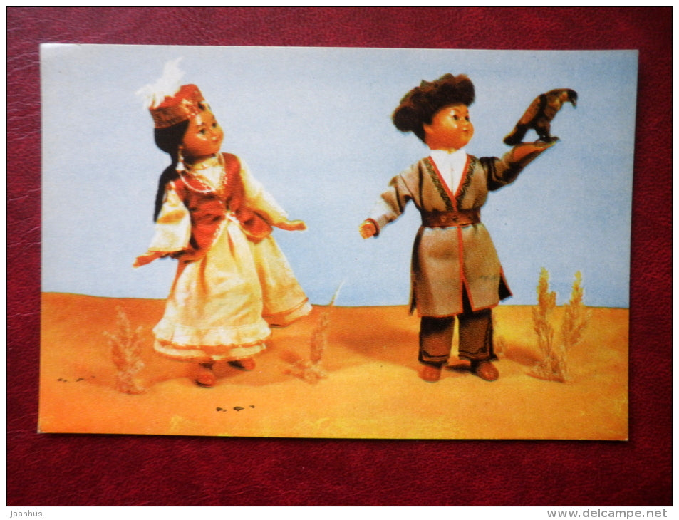 dolls in Kazakh folk costumes - hawk - 1967 - Russia USSR - unused