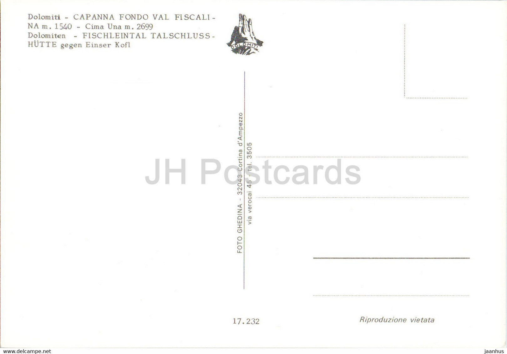 Dolomiti - Capanna Fondo Val Fiscalina - Cima Una - Fischleintal - 17.232 - Italy - unused