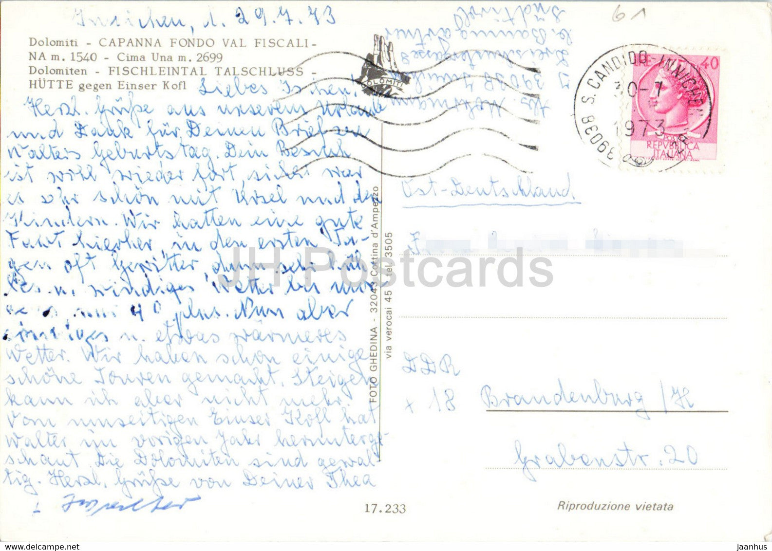 Dolomiti - Capanna Fondo Val Fiscalina - Cima Una - Fischleintal - 17.233 - 1973 - Italy - used