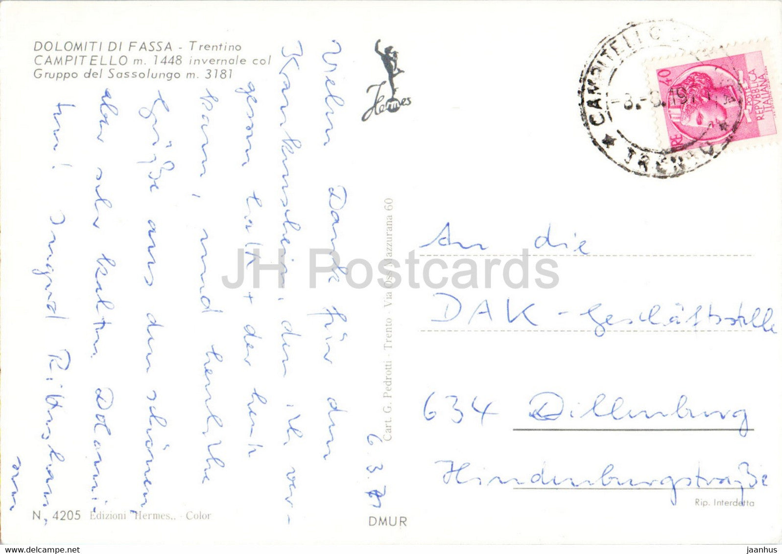 Dolomiti di Fassa - Trentino - Campitello 1448 m - invernale col Gruppo del Sassolungo 3181 m - 1971 - Italy - used