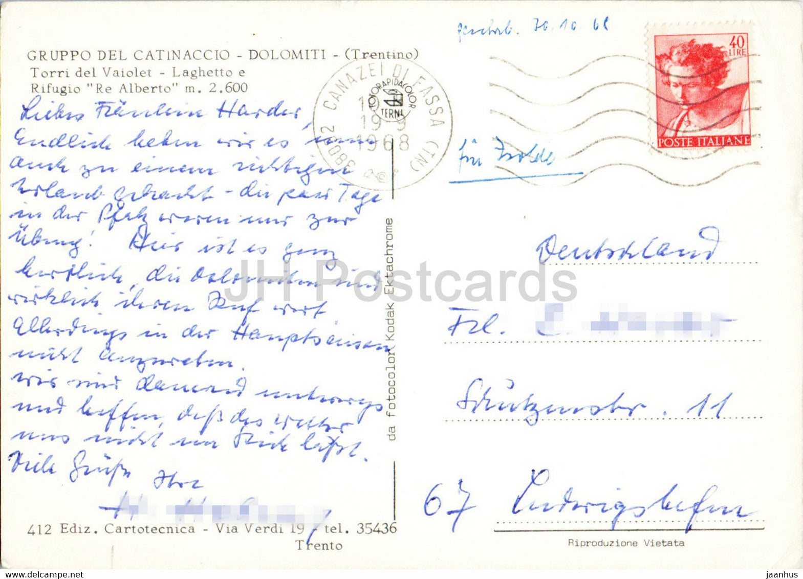 Dolomiti - Gruppo del Catinaccio - Torri del Vaiolet - Rifugio Re Alberto - 1968 - Italy - used