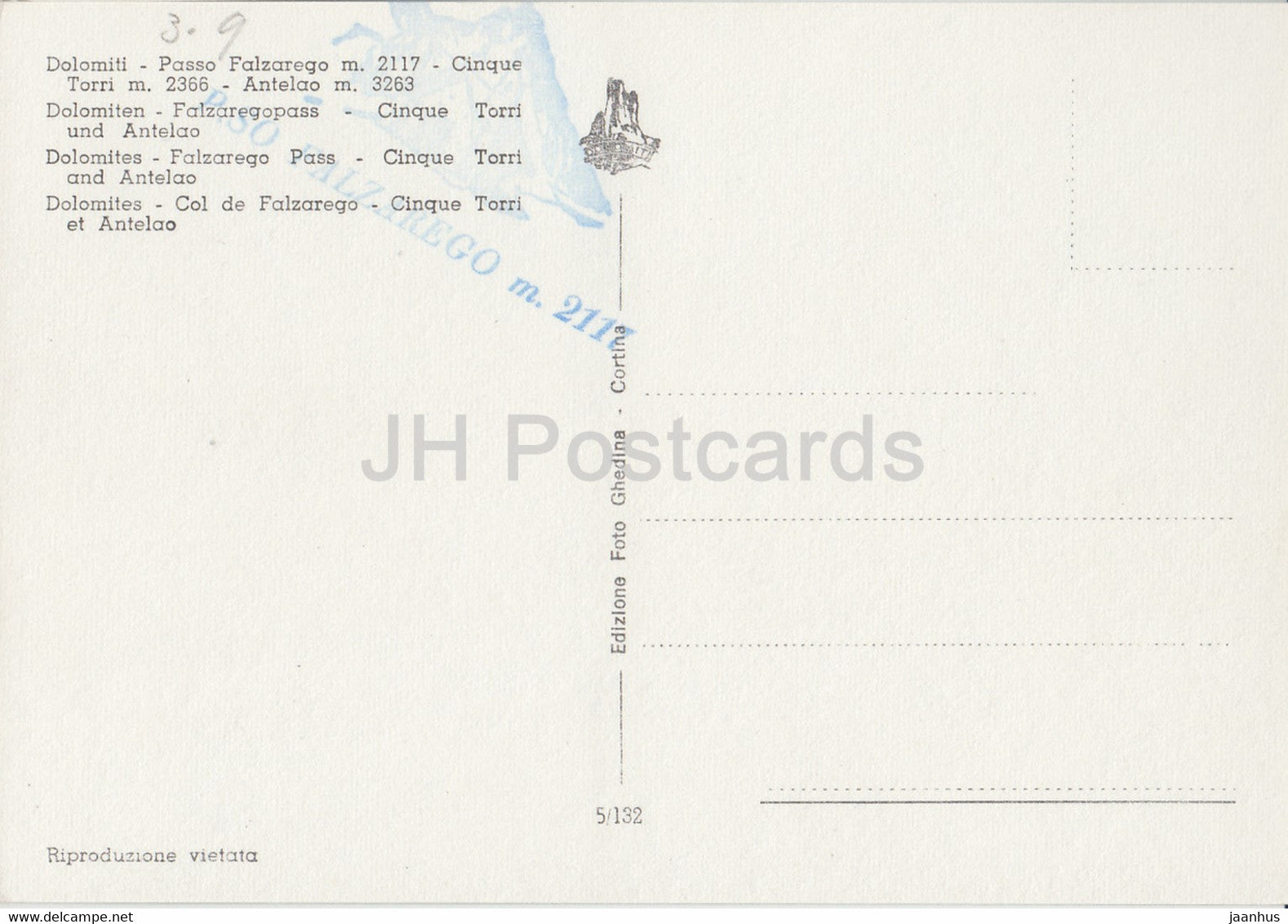 Dolomiti - Passo Falzarego 2117 m - Cinque Torri 2366 m - Antelao 3263 m - Italy - Italia - unused