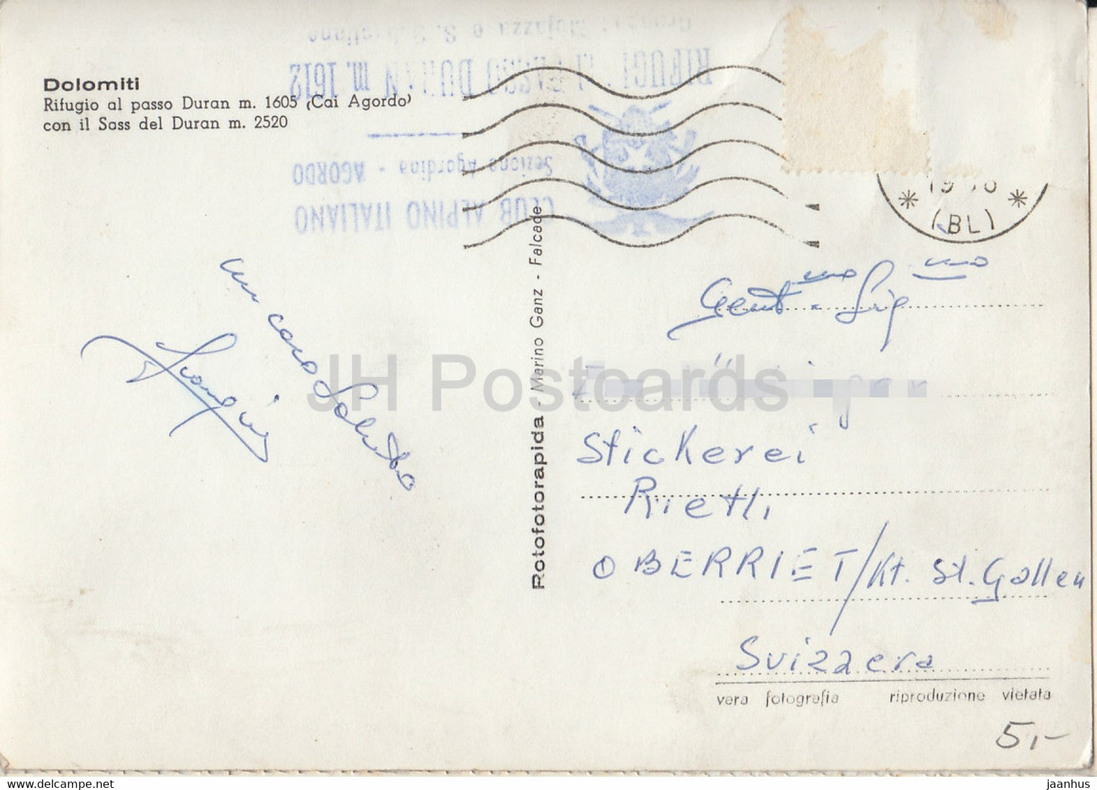 Dolomiti - Rifugio al passo Duran 1605 m - Cai Agordo - con il Sass del Duran 2520 m - car - 1963 - Italy - used