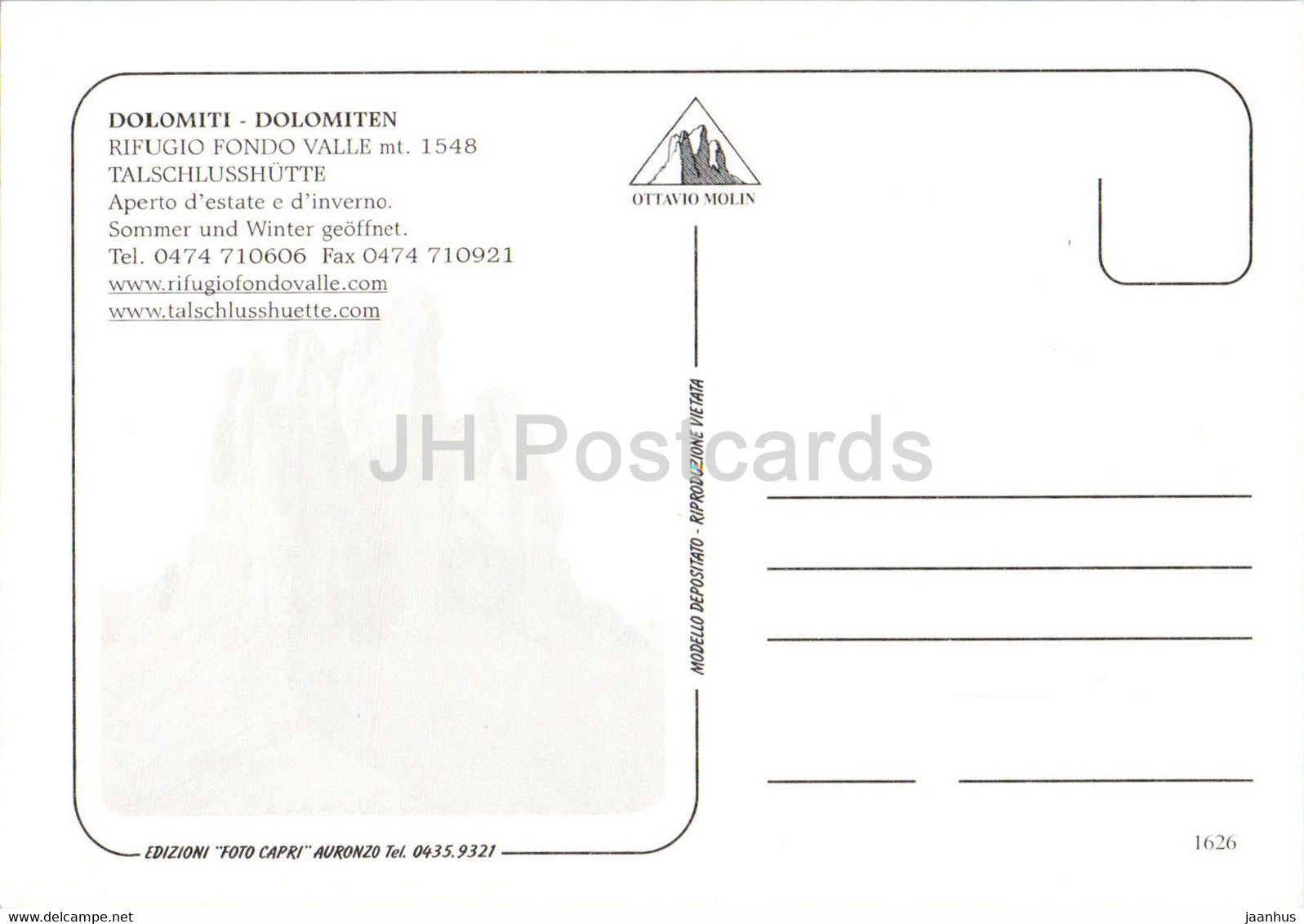 Dolomiti - Rifugio Fondo Valle 1548 m - Talschlusshutte Fischleinboden - 1626 - Italy - unused
