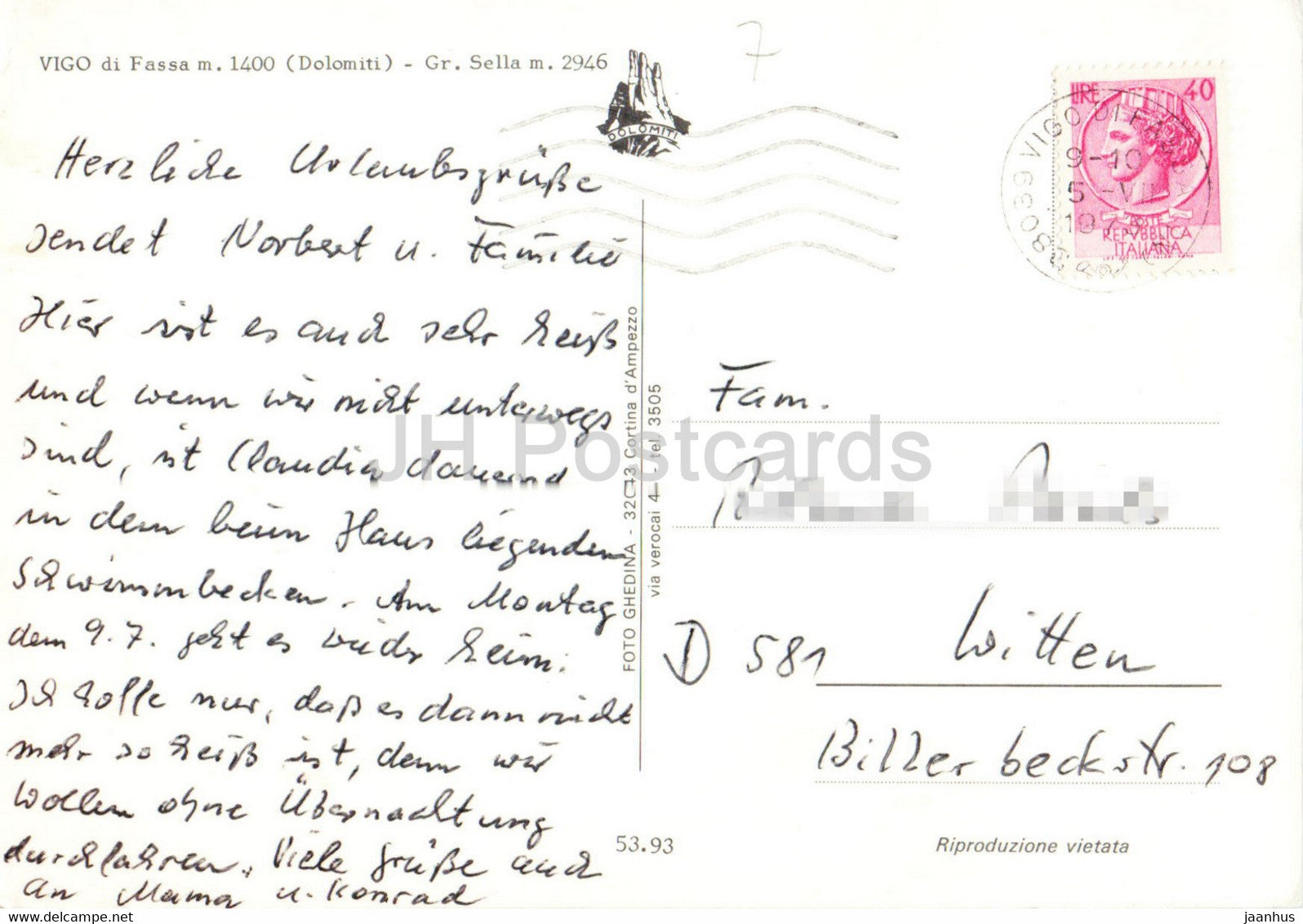 Dolomiti - Vigo di Fassa 1400 m - Gr Sella - 1975 - Italy - used