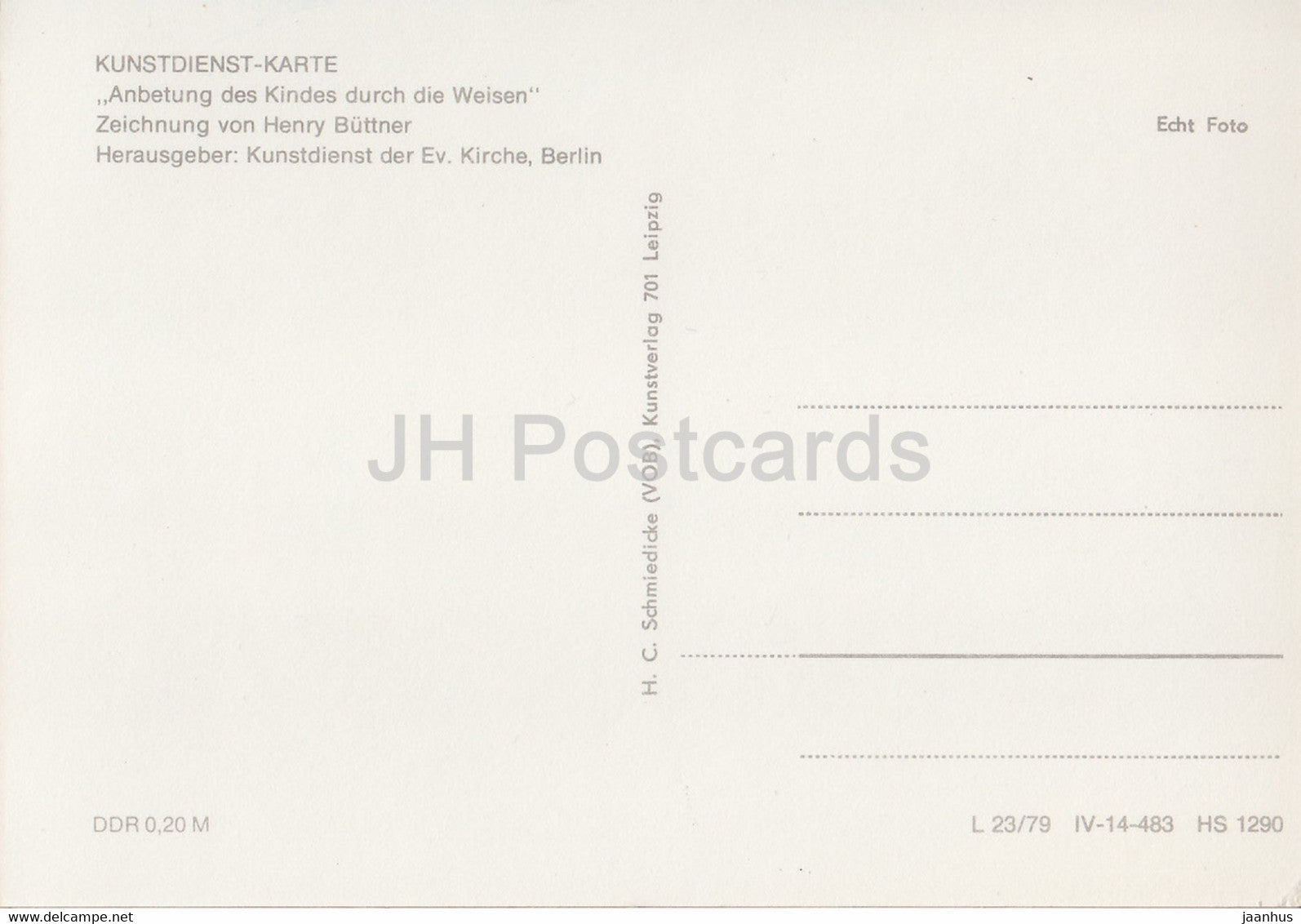 Drawing by Henry Buttner - Anbetung des Kindes durch die Weisen - German art - Germany DDR - unused