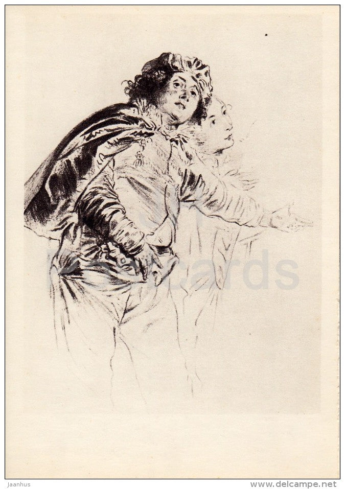 drawing by Jean-Antoine Watteau - Actors of italian Theatre - French art - 1963 - Russia USSR - unused