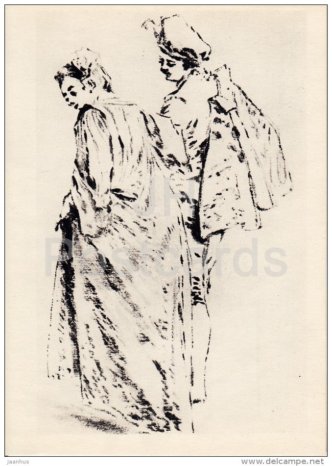 drawing by Jean-Antoine Watteau - Lady and Cavalier - French art - 1963 - Russia USSR - unused