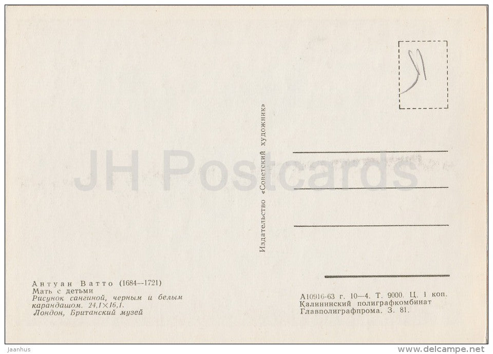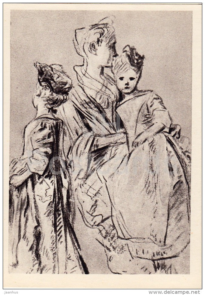 drawing by Jean-Antoine Watteau - Mother with Children - French art - 1963 - Russia USSR - unused