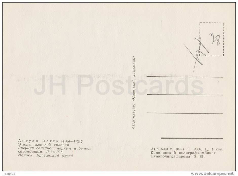 drawing by Jean-Antoine Watteau - Woman´s Head - sketch - French art - 1963 - Russia USSR - unused