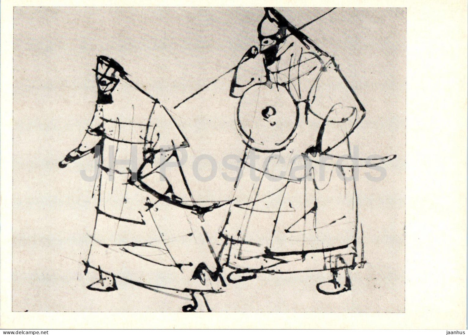 Drawing by Tadeusz Kulisiewicz - Warriors crusade - Polish art - 1977 - Russia USSR - unused