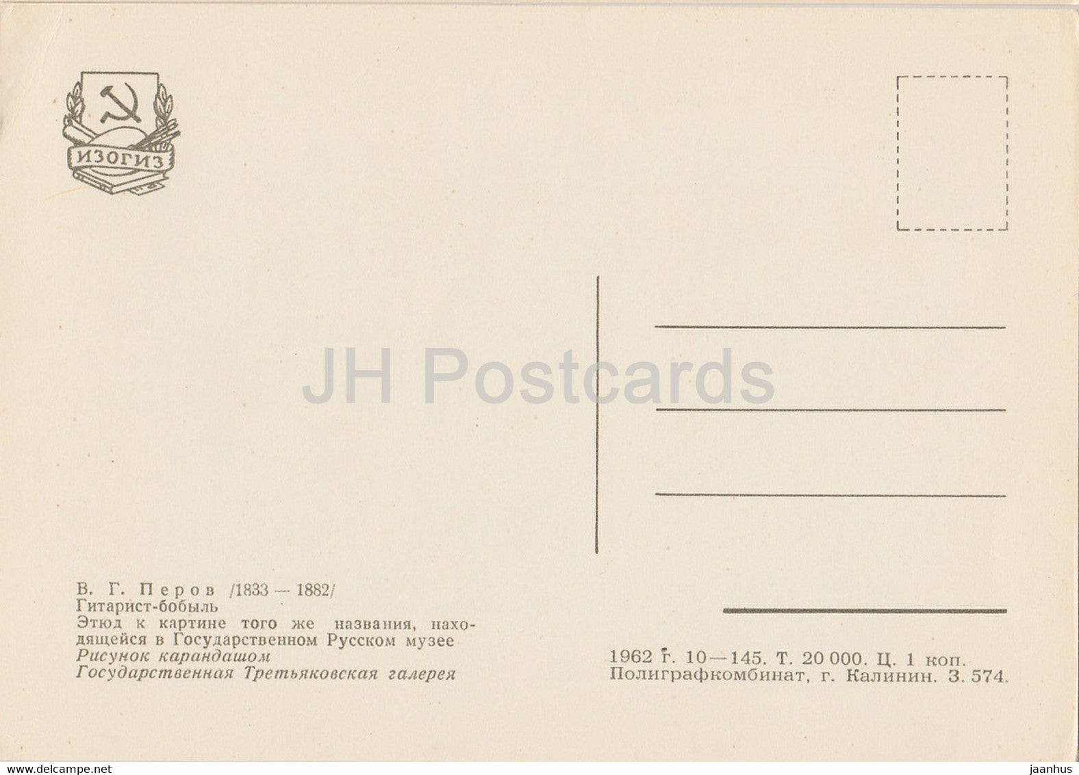 drawing by V. Perov - Guitarist - guitar - Russian art - 1962 - Russia USSR - unused