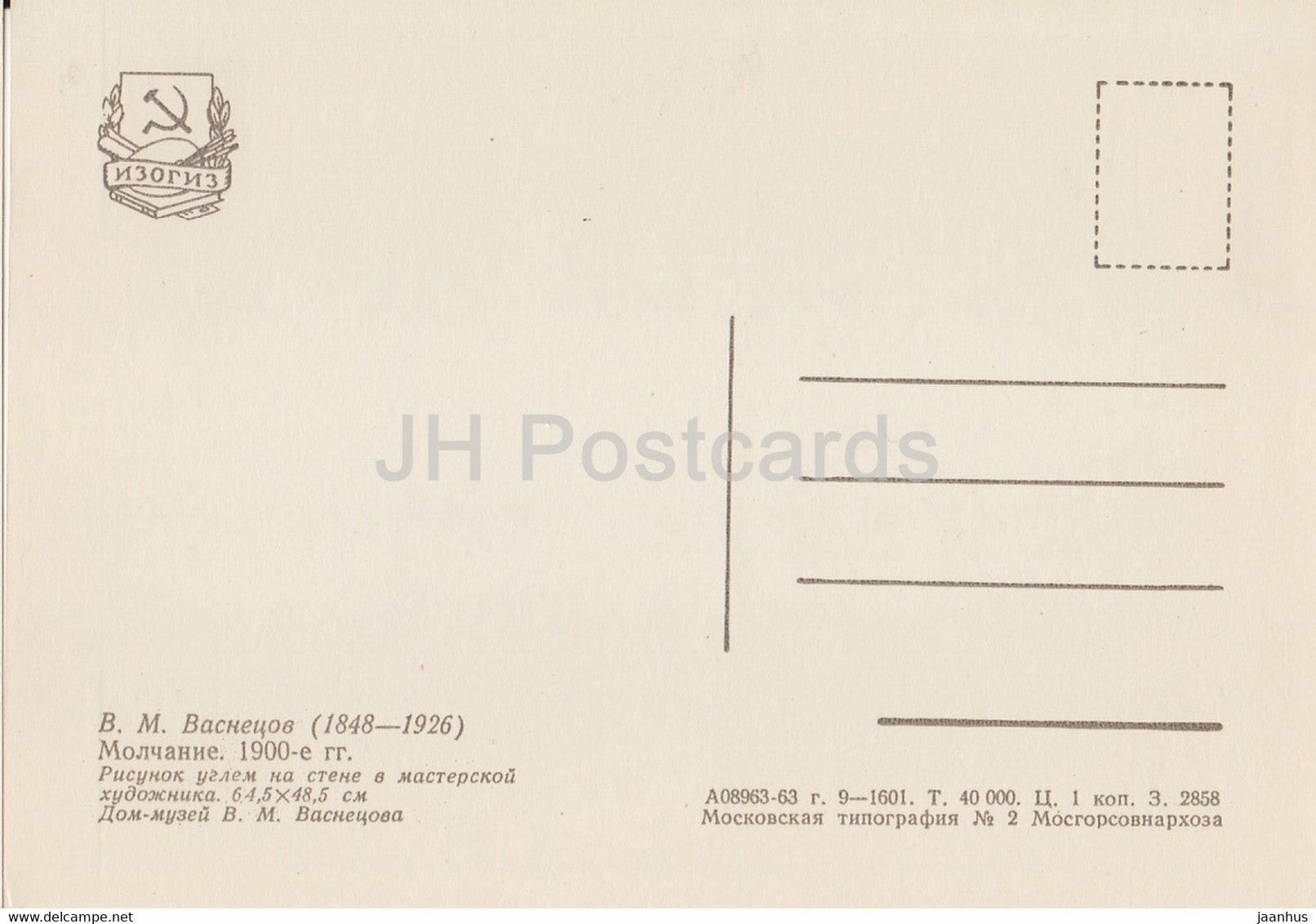 Drawing by V. Vasnetsov - Silence - Russian art - 1963 - Russia USSR - unused