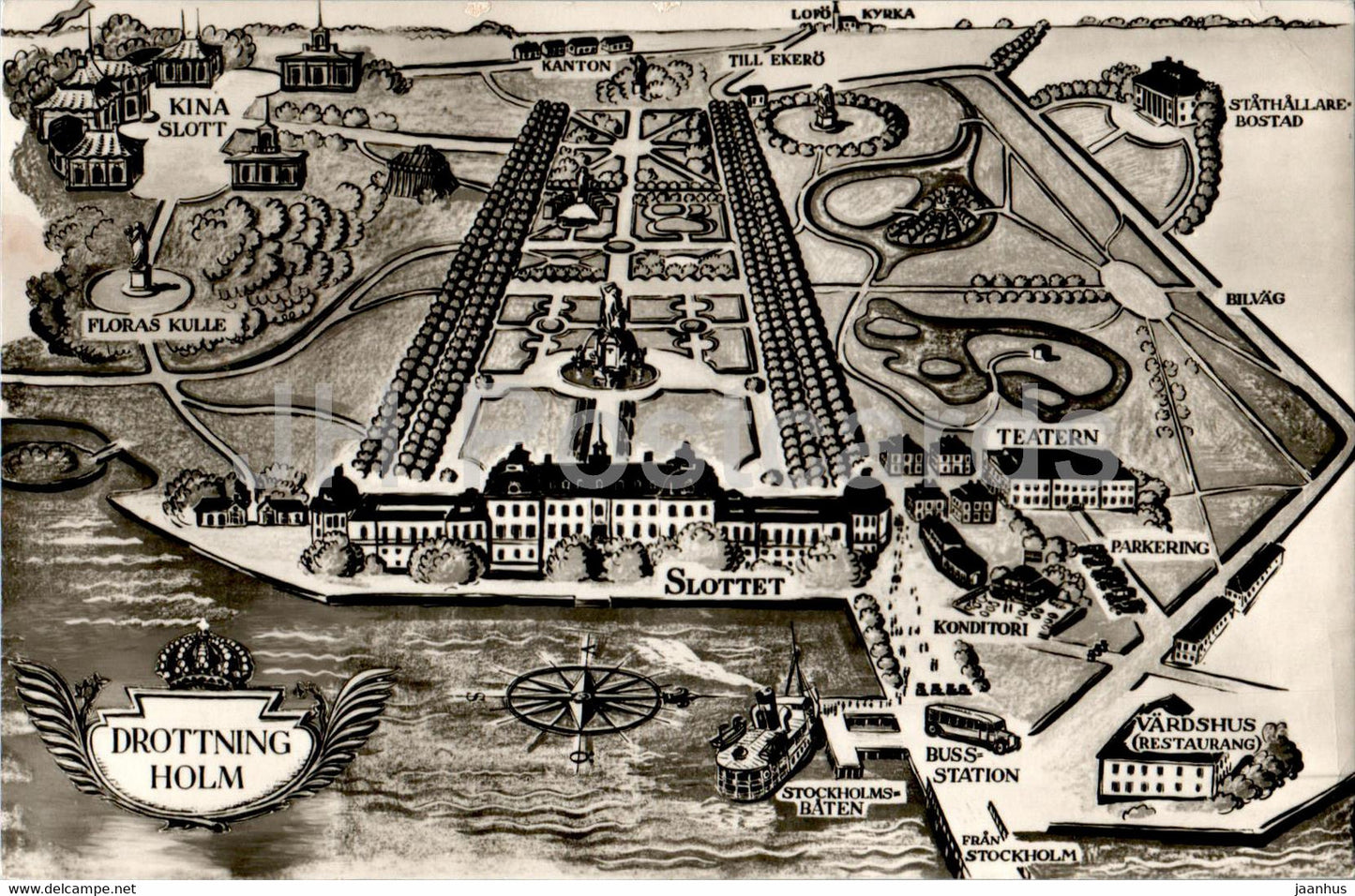 Drottning Holm - map - old postcard - 1957 - Sweden - used