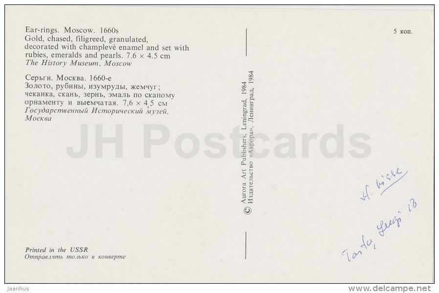 Earrings , 1660s - gold - Russian and Soviet Jewellery - 1984 - Russia USSR - unused