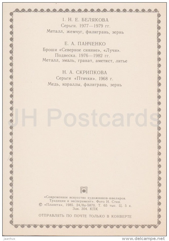 earrings - brooch - pendant - Modern art of Russian Jewelers - 1985 - Russia USSR - unused