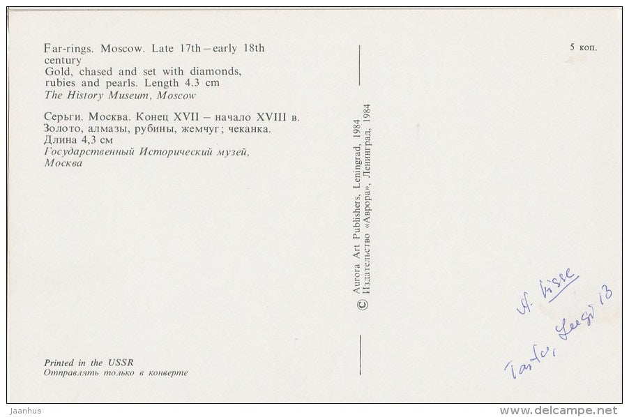Earrings - gold - Russian and Soviet Jewellery - 1984 - Russia USSR - unused