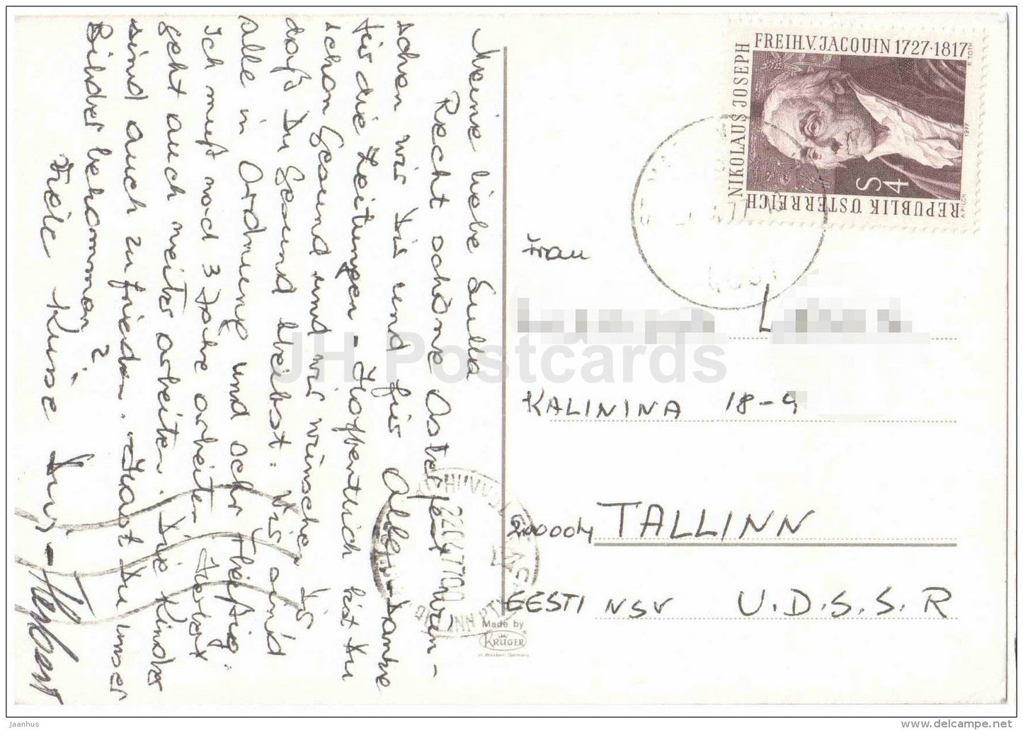 - Year: sent from Austria to Estonia 1977