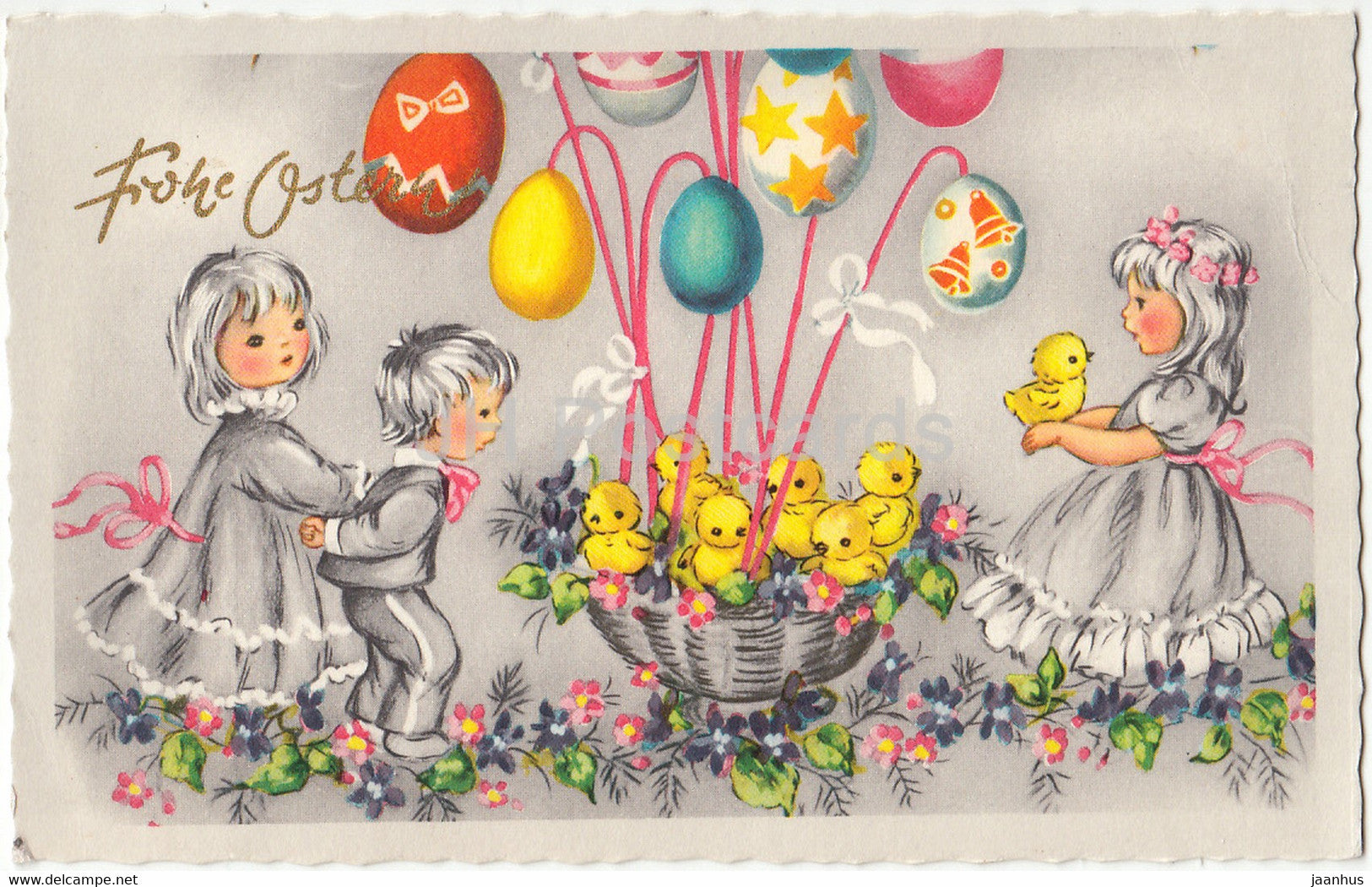 Easter Greeting Card - Frohe Ostern - children - chicken - illustration - old postcard - Austria - unused