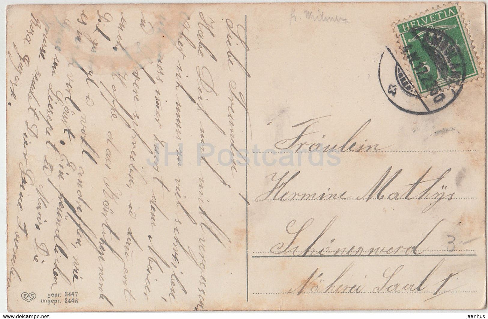 Easter Greeting Card - Herzinnigen Ostergruss - chicken - EAS 3448 - old postcard - 1917 - Germany - used
