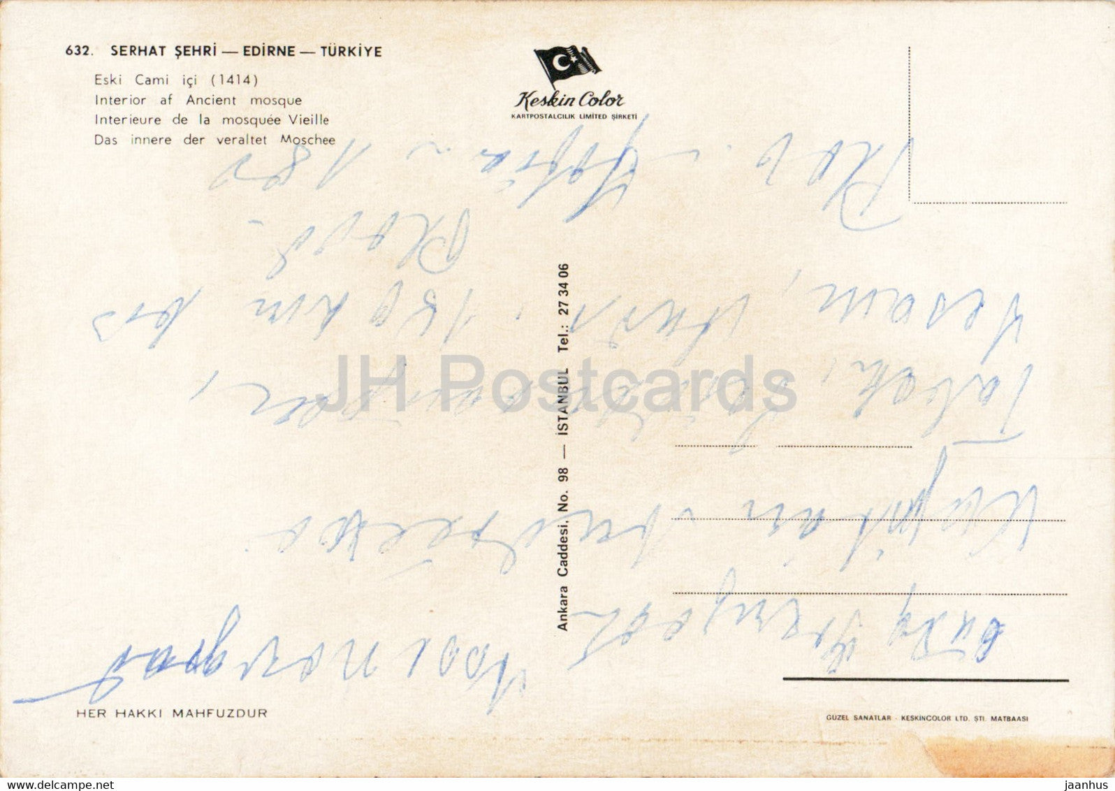 Edirne - Interior of Ancient Mosque - 632 - Keskin - Turkey - used