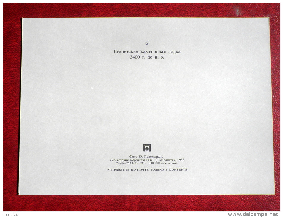 Egyptian reed boat , 3400 BC - model ship - 1988 - Russia USSR - unused