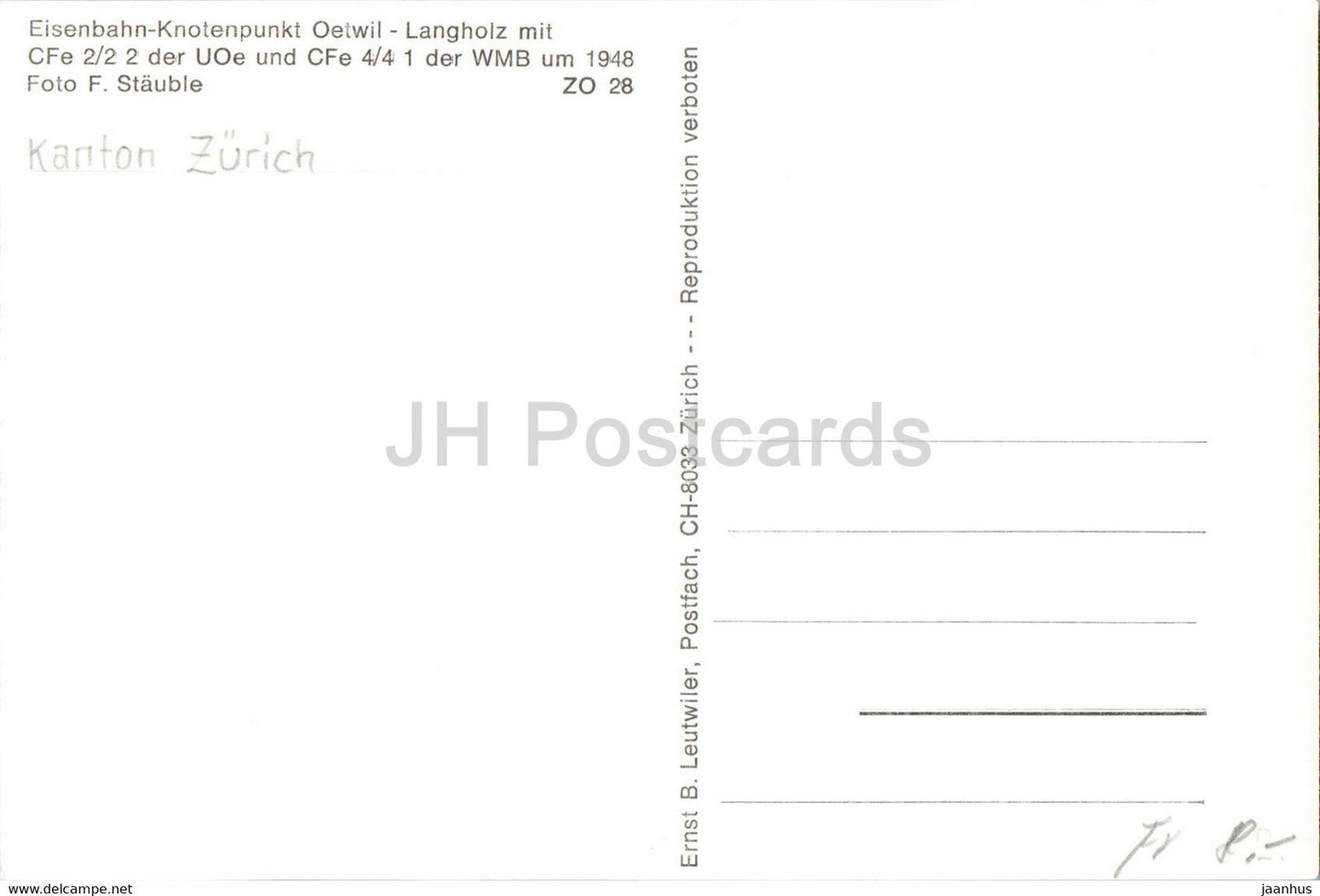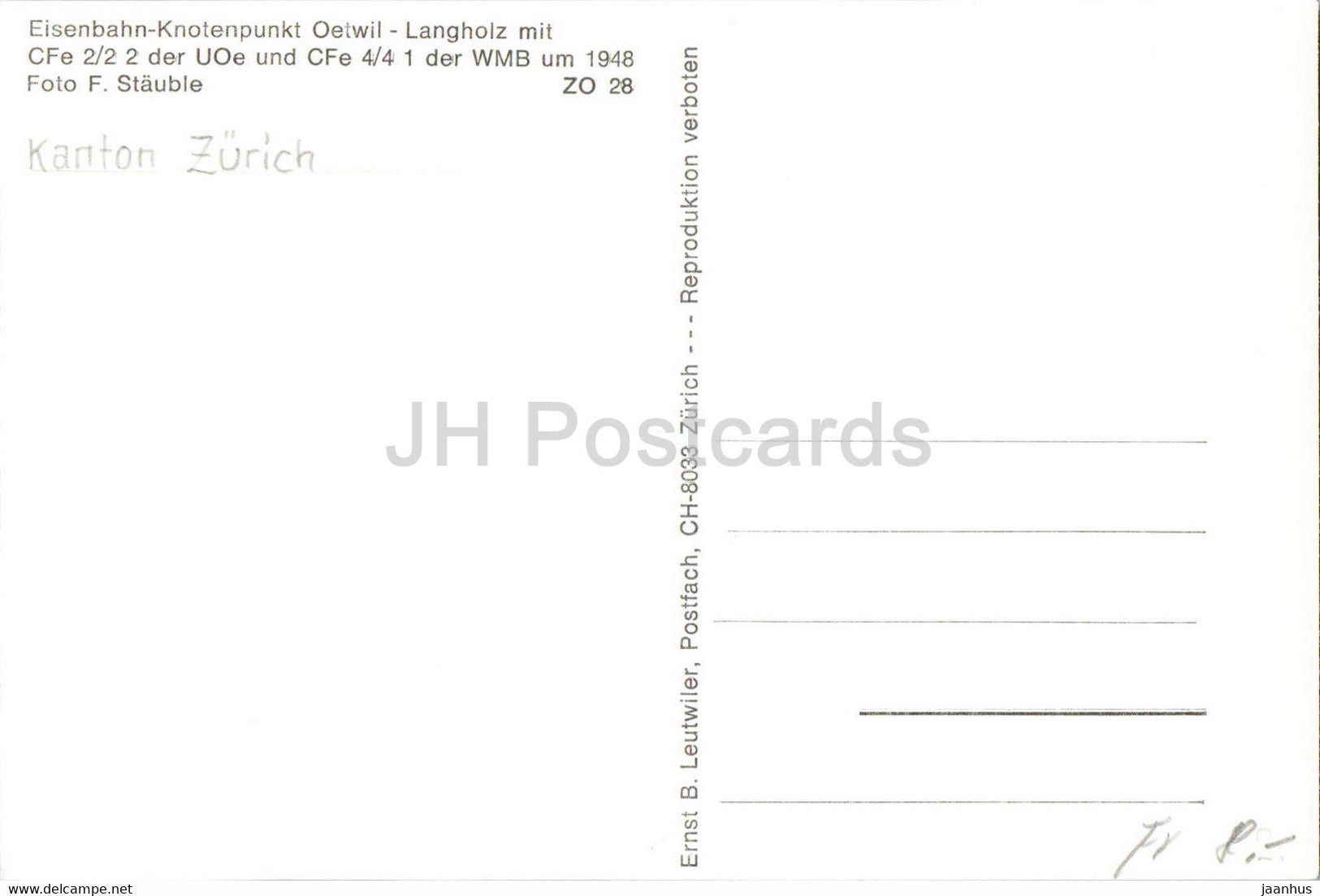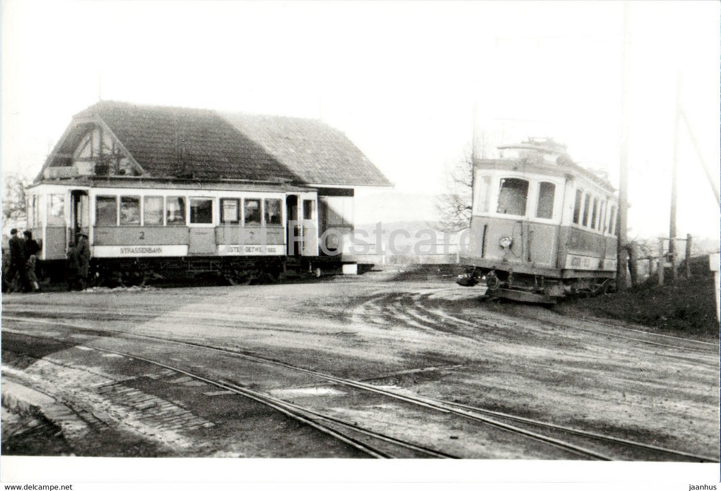 Eisenbahn Knotenpunkt Oetwil - tram - train - railway - old postcard - Switzerland - unused