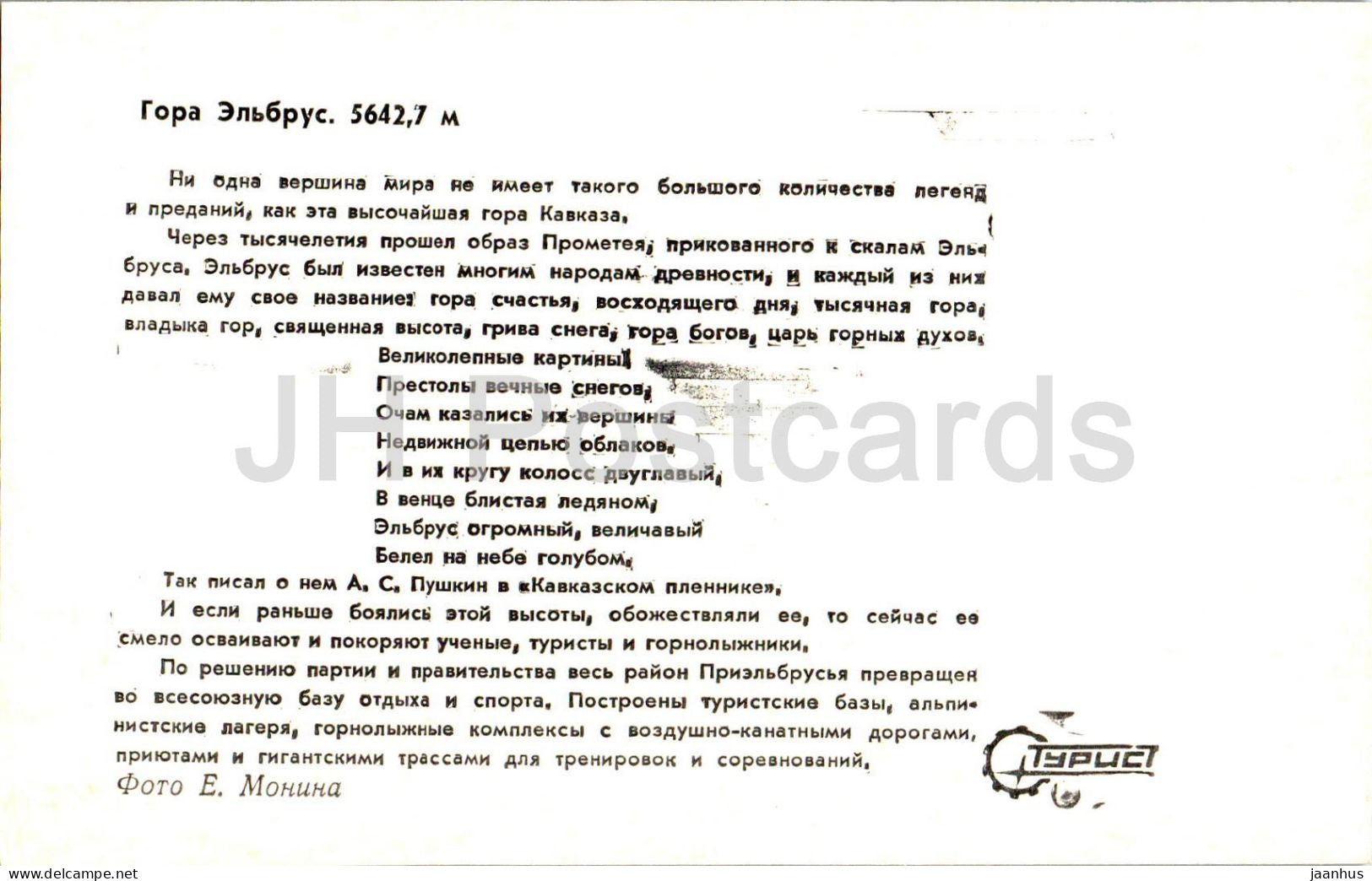Elbrus mountain - Kabardino-Balkaria - Turist - 1973 - Russia USSR - unused