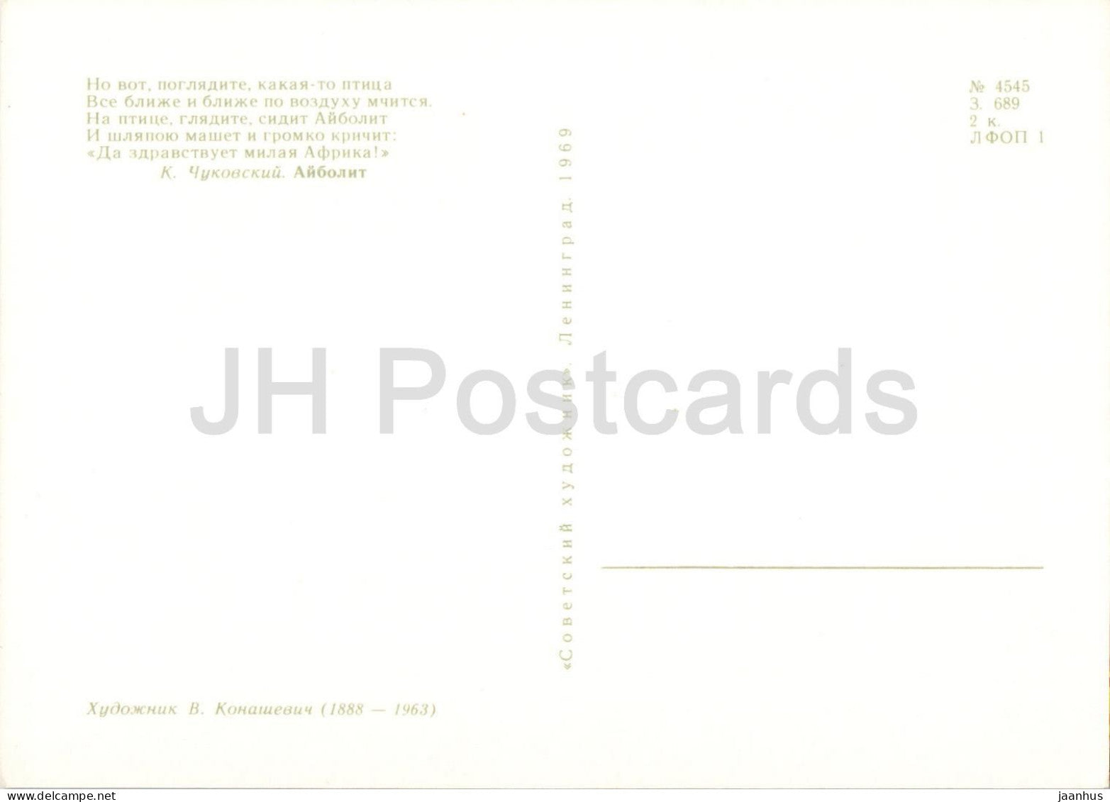 elephant - giraffe - lion - rhino Doctor Aibolit - Fairy Tale by Chukovsky - illustration - 1969 - Russia USSR - unused