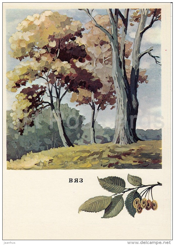 Elm - Ulmus - Russian Forest - trees - illustration by G. Bogachev - 1979 - Russia USSR - unused