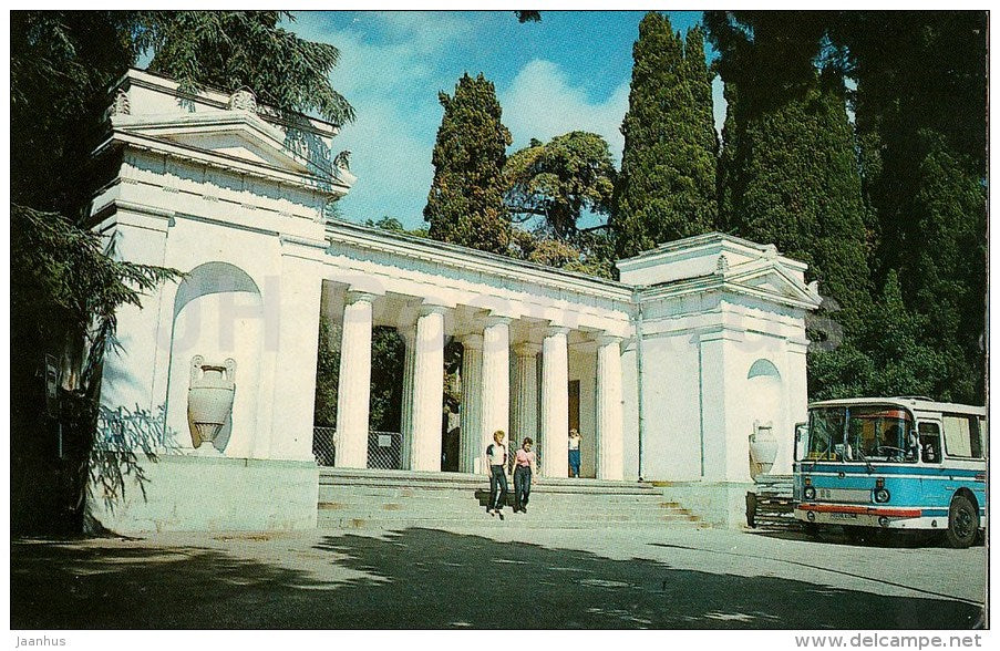 entrance to the Lower Park - bus LAZ - Nikitsky Botanical Garden - Crimea - 1989 - Ukraine USSR - unused