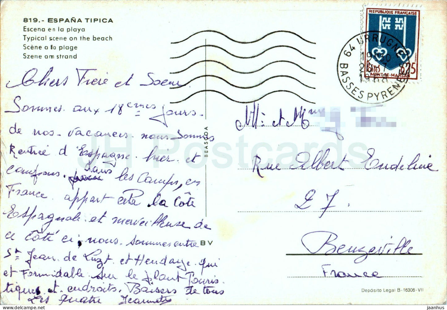 Espana Tipica - Escena en la playa - beach - animals - donkey - 819 - 1968 - Spain - used