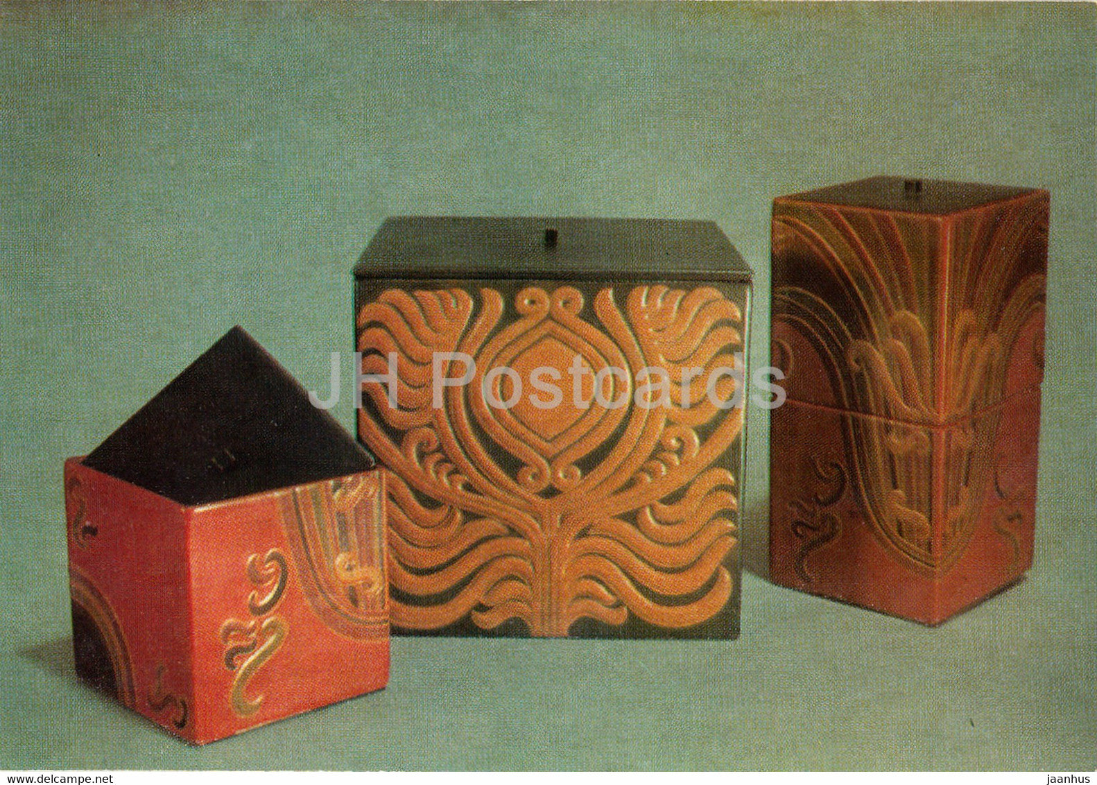 Estonian Leather Art - Cube boxes by Ella Kulv - Estonian art - 1975 - Russia USSR - unused