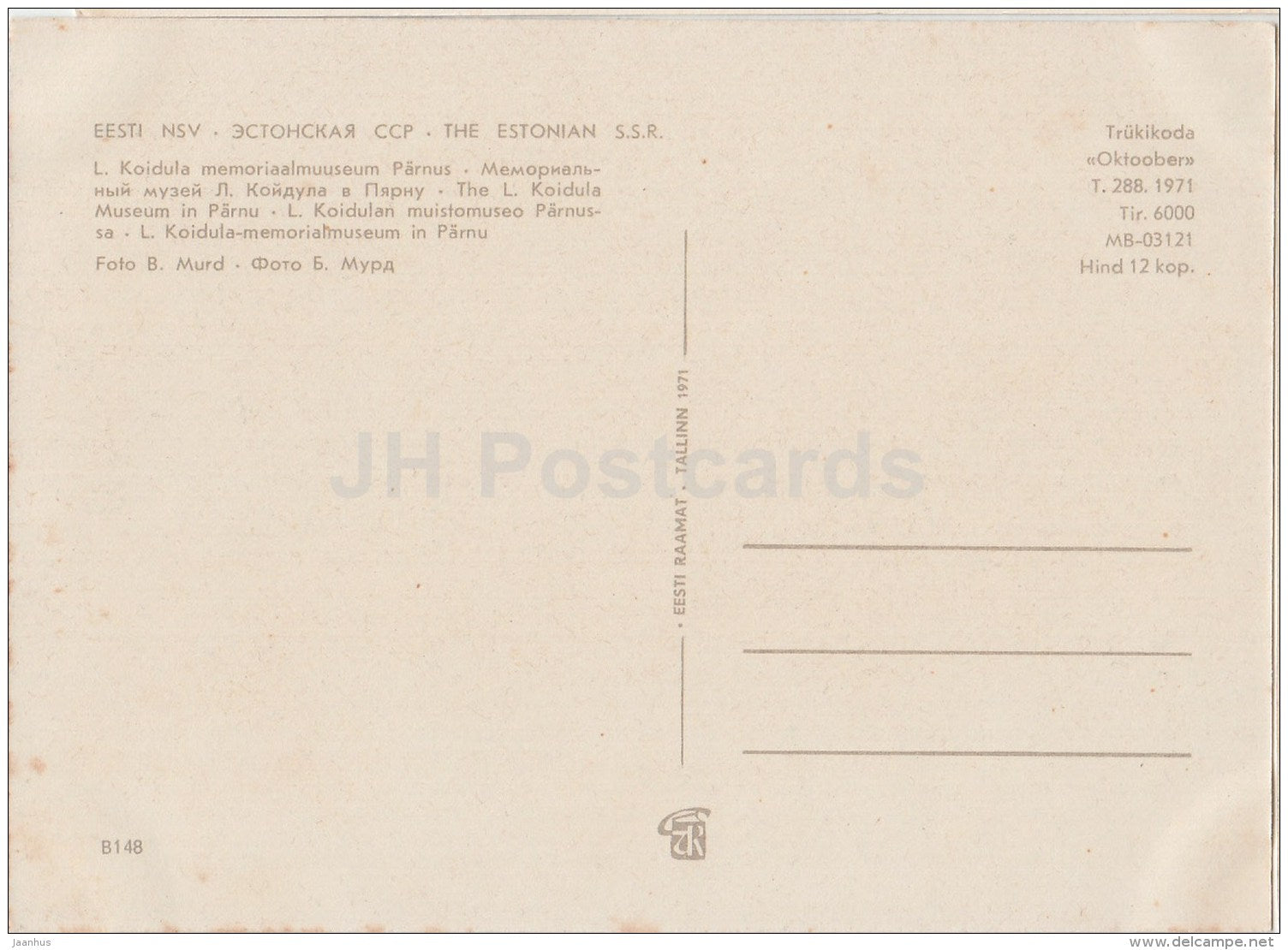 Estonian poet L. Koidula Museum - Pärnu - 1971 - Estonia USSR - unused