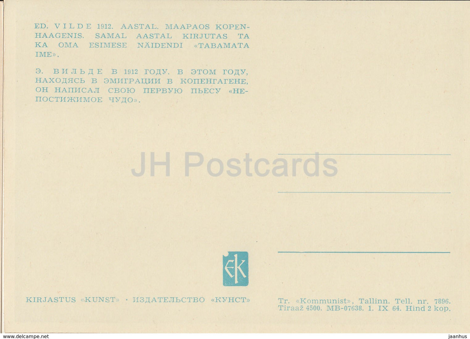 Estonian Writer Eduard Vilde - 1912 in Copenhagen - 1964 - Estonia USSR - unused