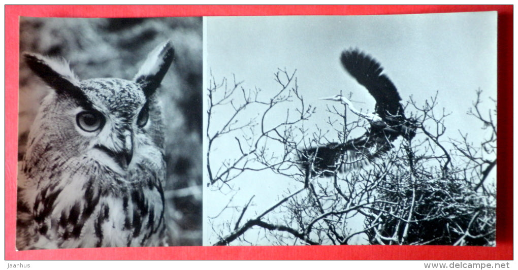 Eurasian Eagle-Owl , Bubo bubo , Ardea ciner - The Grey Heron - birds - Oka Nature reserve - 1973 - USSR Russia - unused