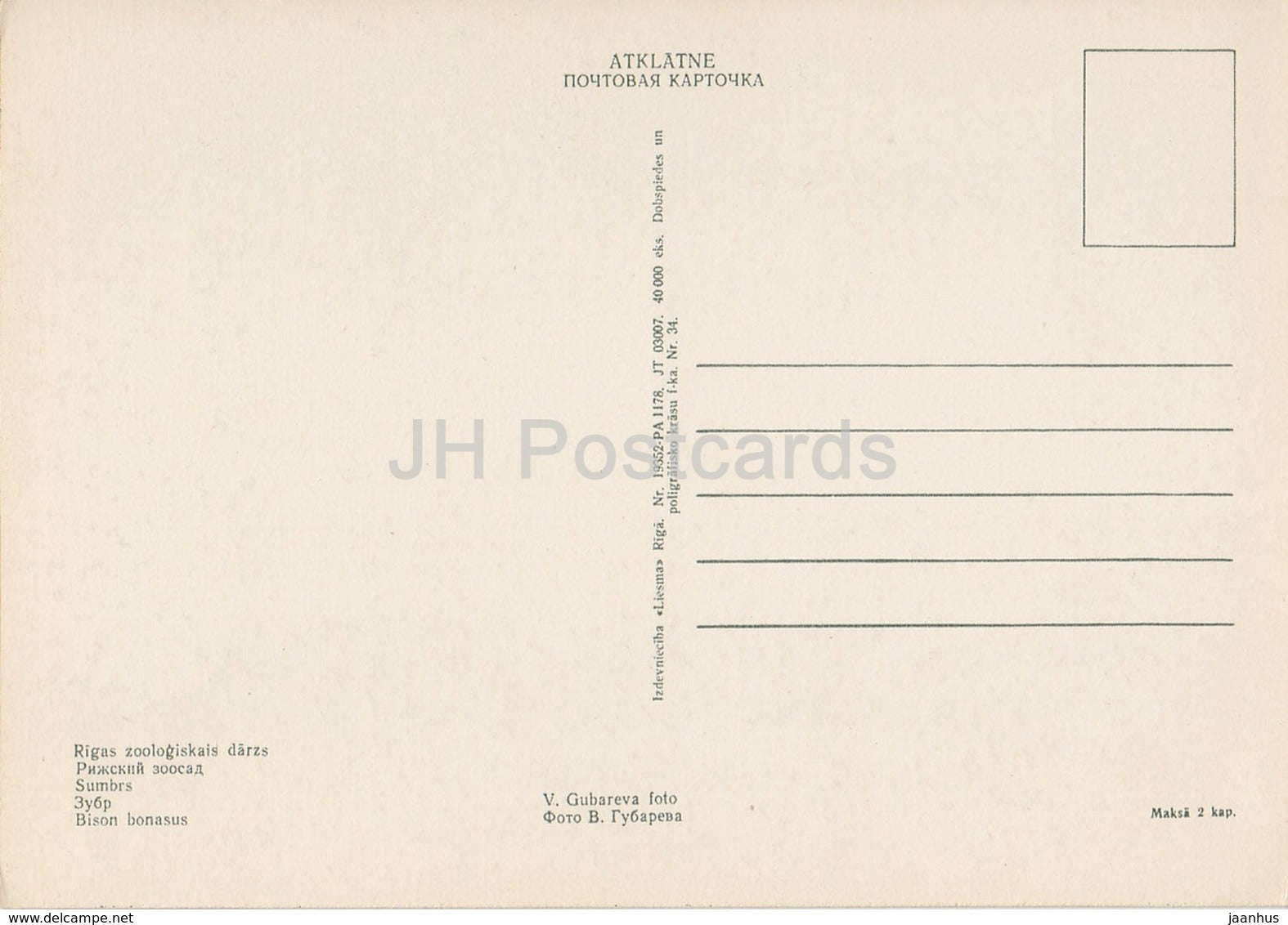 European bison - Bison bonasus - Riga Zoo - old postcard - Latvia USSR - unused