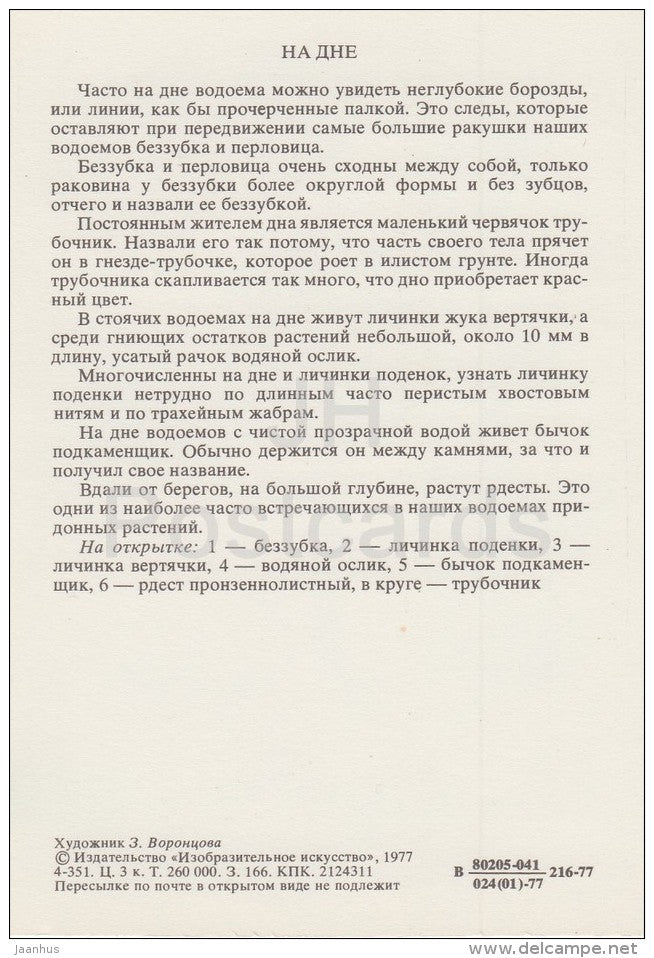 European bullhead , fish - Mayfly - Anodonta , shell - Asellus aquaticus - Life in Water - 1977 - Russia USSR - unused