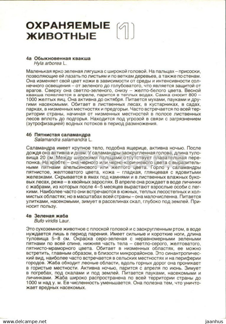 European tree frog - Fire salamander - European green toad - frog - Protected Animals - Russia USSR - unused