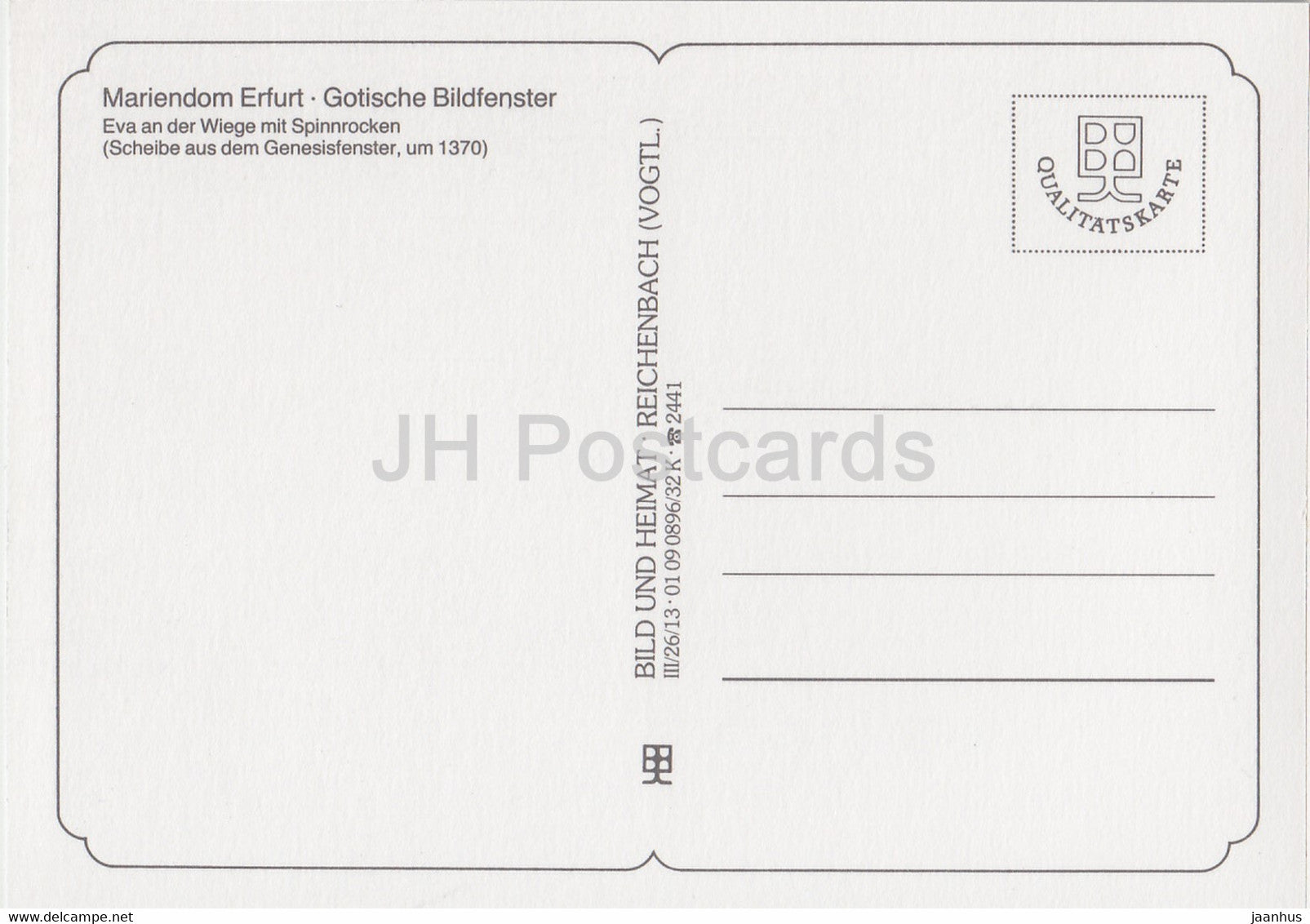 Eva an der Wiege mit Spinnrocken - Mariendom Erfurt - Gotische Bildfenster - cathedral - DDR Germany - unused