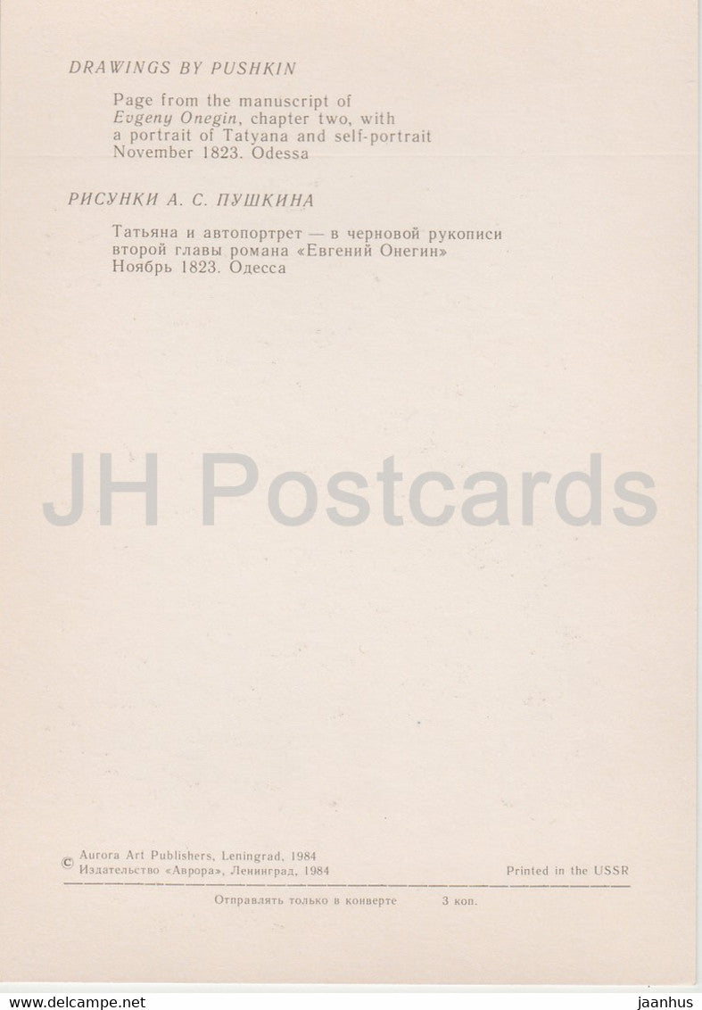 Evgeny Onegin manuscript - Drawings by Russian Poet Pushkin - 1984 - Russia USSR - unused