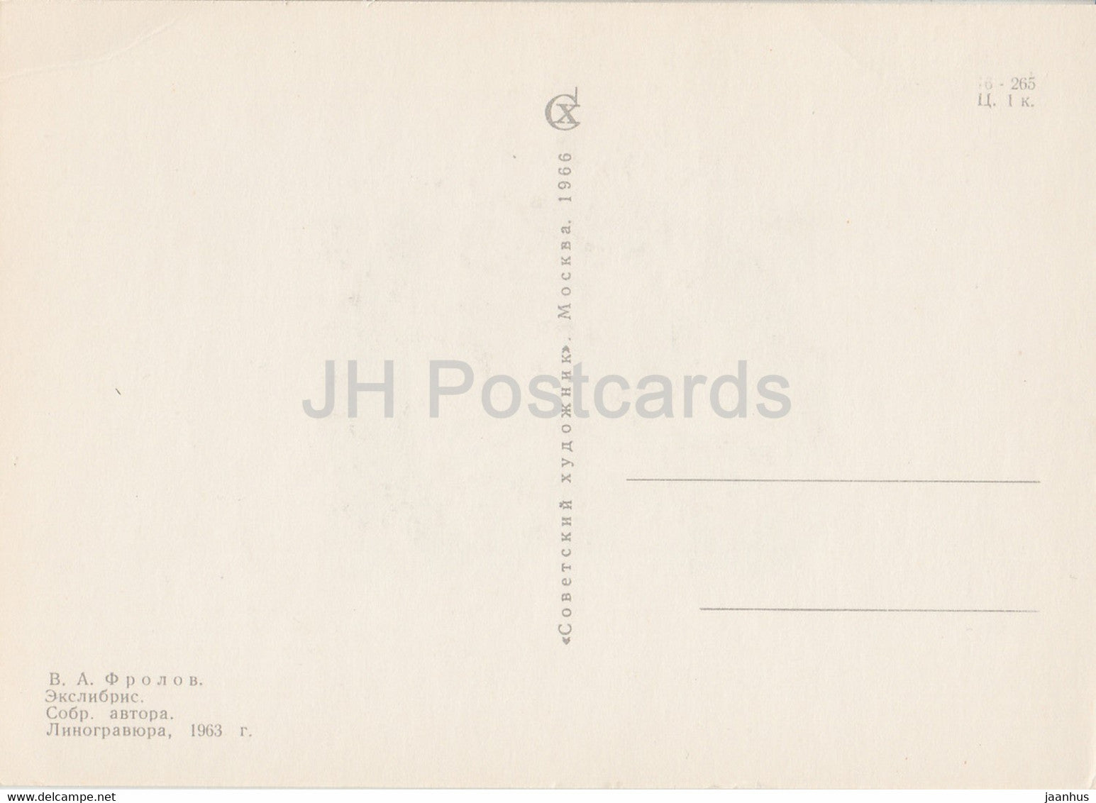 Ex Libris - V. Frolov - illustration by G. Ratner - deer - 1966 - Russia USSR - unused