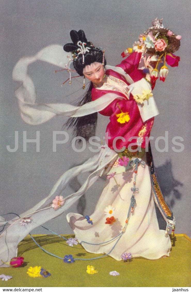 Fairy disassembling flowers - woman - silk - China Handicraft - Esperanto - 1964 - China - unused