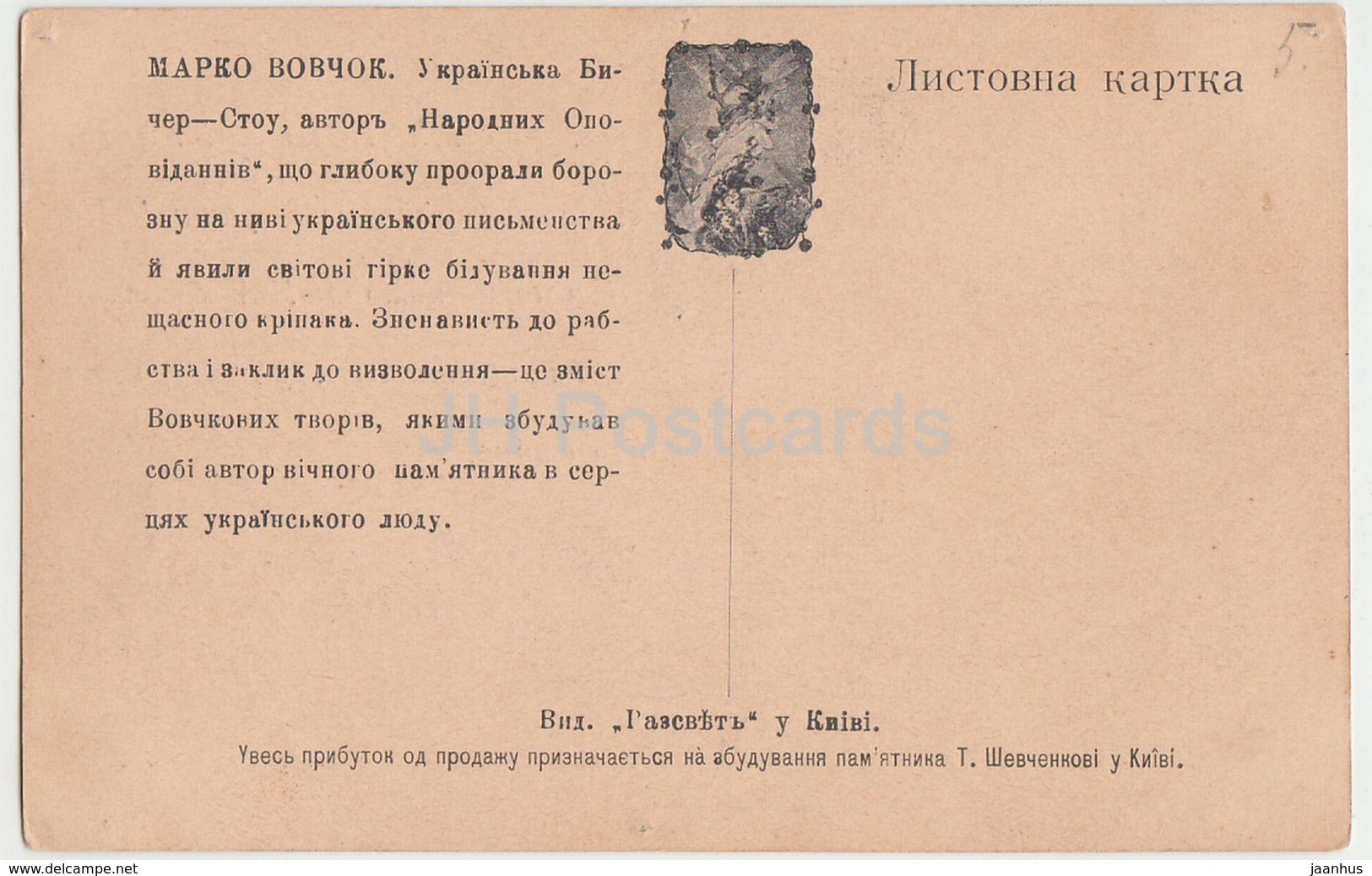 Famous Ukrainian Writer Marko Vovchok - Ukraine - old postcard - Imperial Russia - unused