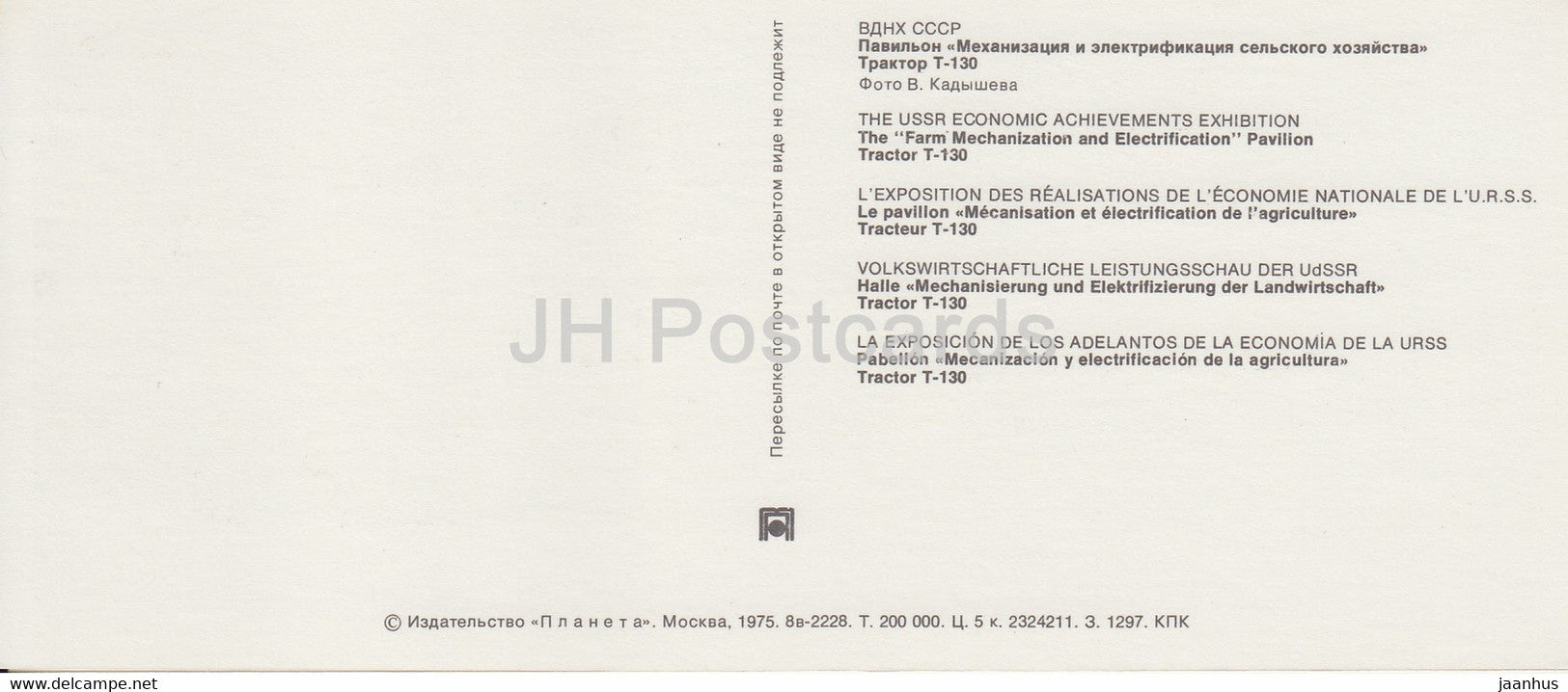 Farm Mechanization and Electrification pavilion - tractor T-130 - VDNKh - 1975 - Russia USSR - unused