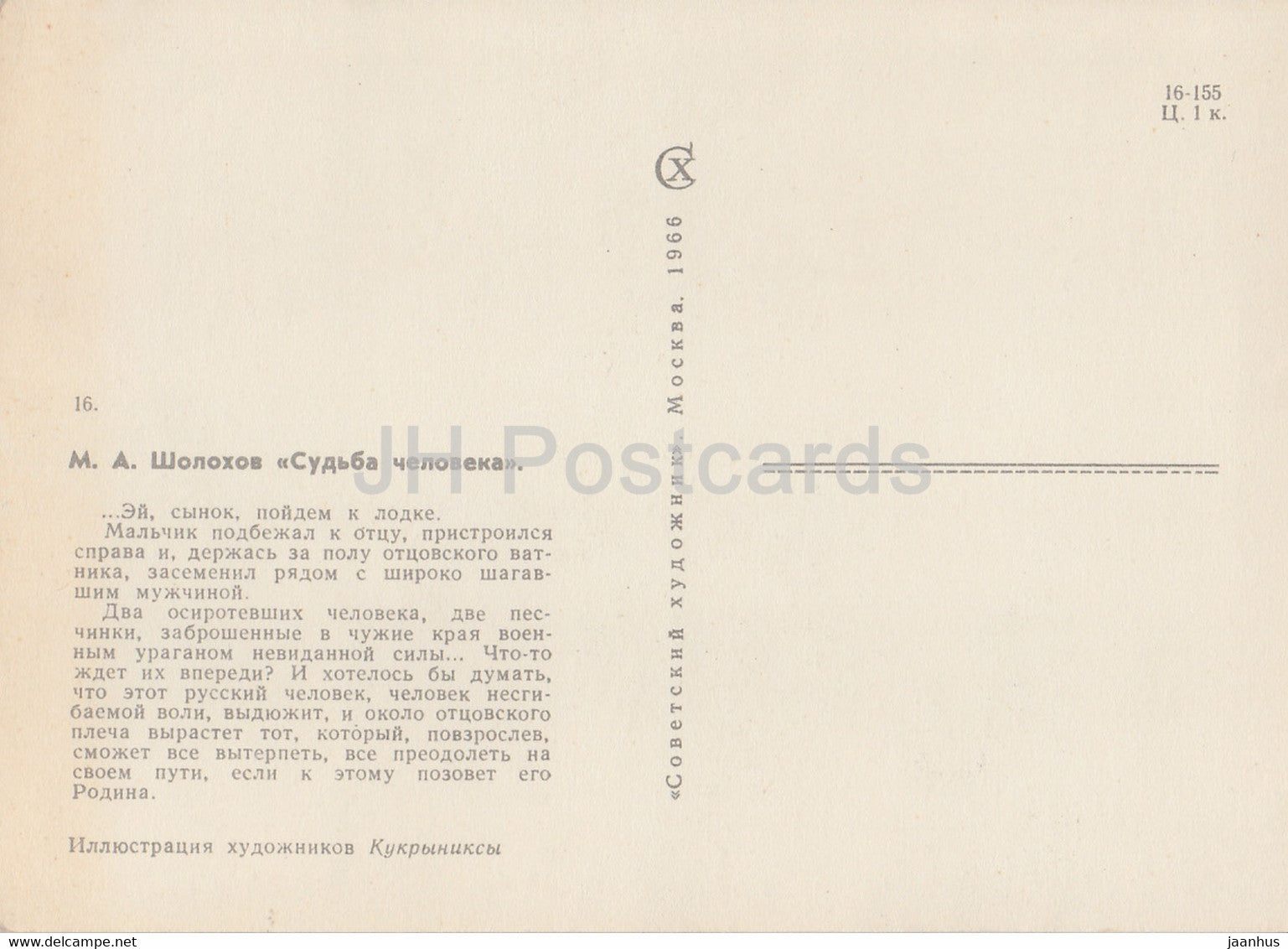Fate of a Man by Mikhail Sholokhov - illustration by Kukryniksy - Father and Son - 1 - 1966 - Russia USSR - unused